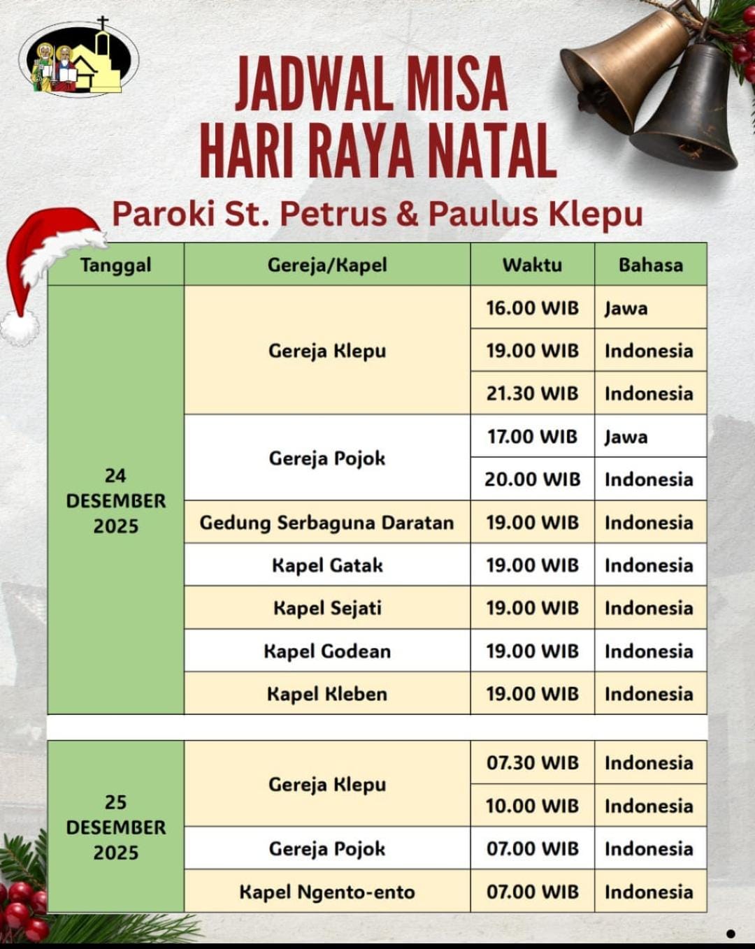 Jadwal Misa Hari Raya Natal Paroki St. Petrus & Paulus Klepu